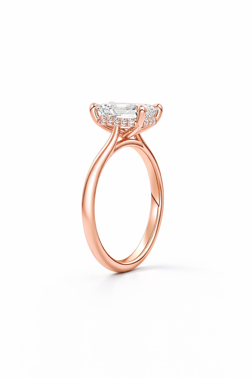 14K Cathedral Flat Band Hidden Halo Emerald Solitaire Size 6.5