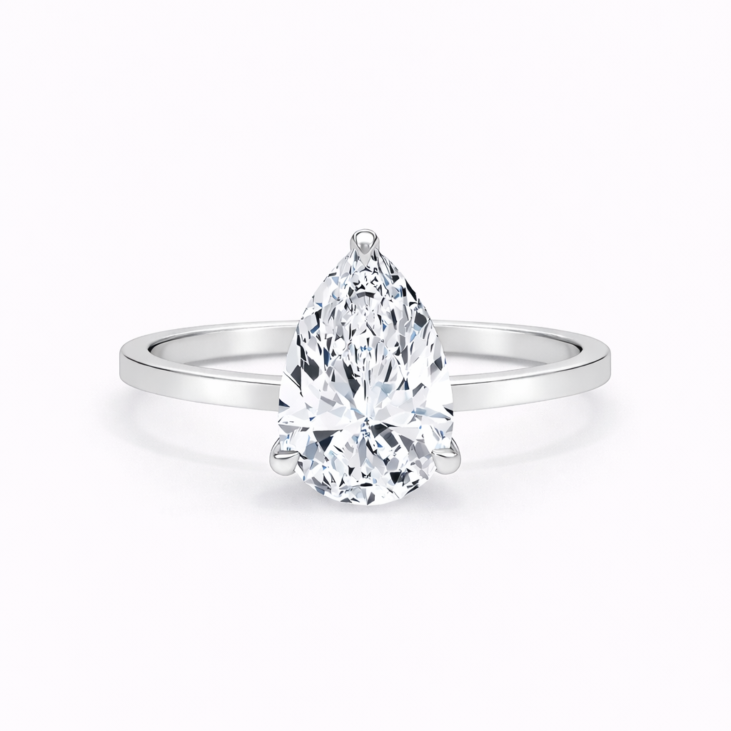 14K Cathedral Flat Edge Pear Solitaire Size 6.5