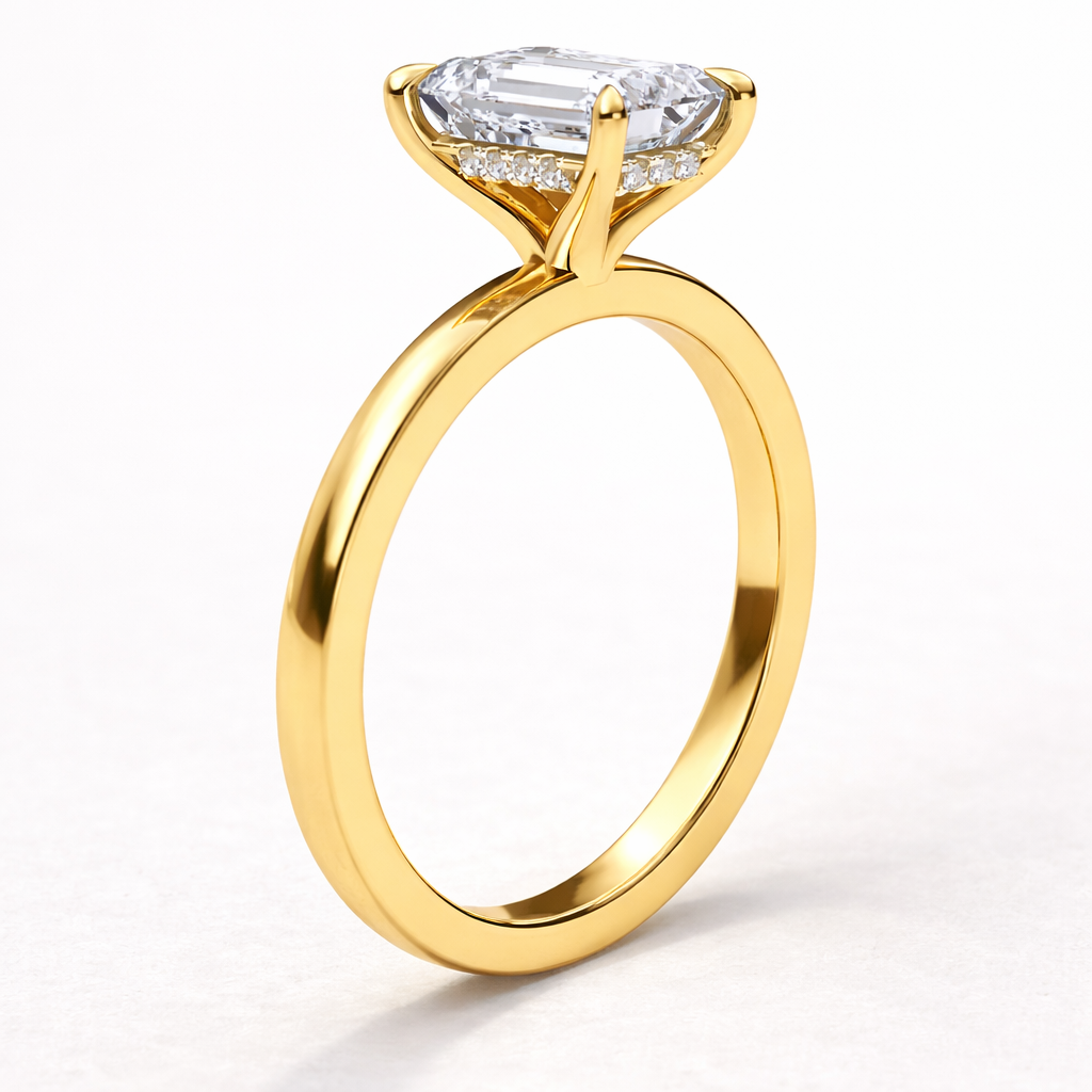 14K Flat Band Hidden Halo Emerald Solitaire Size 6.5